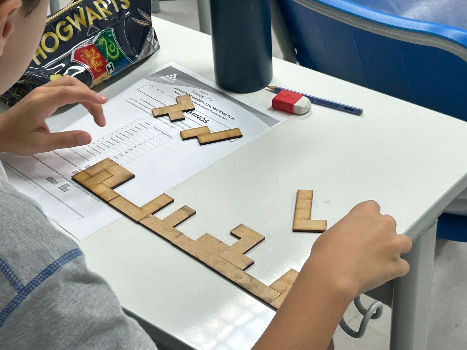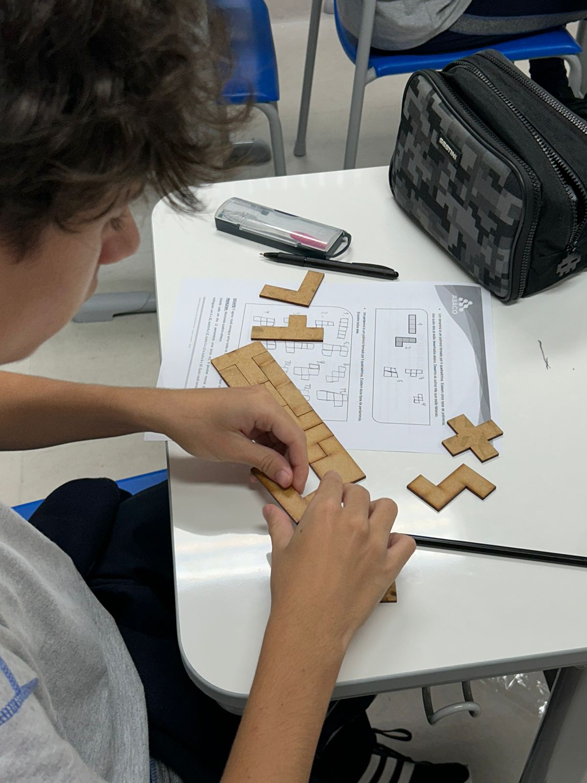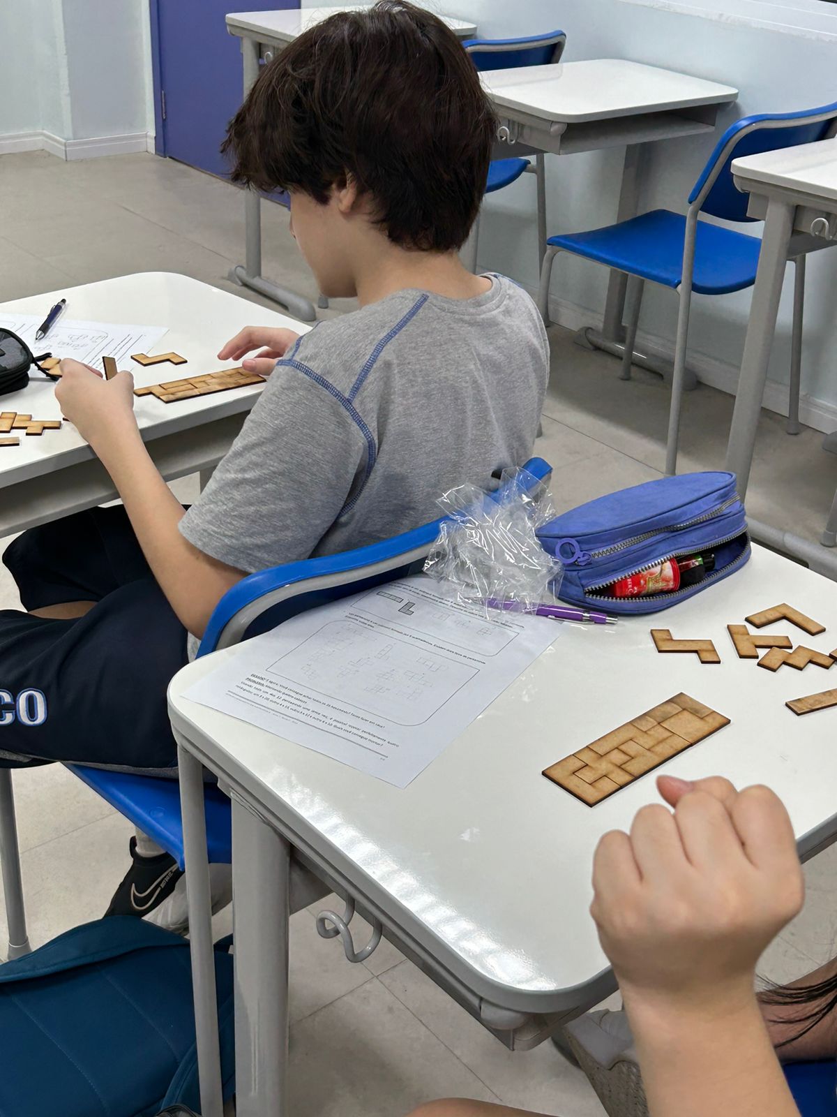 Você conhece um pentaminó? Os estudantes do aprofundamento de matemática conhecem bem! Durante as aulas de aprofundamento, os alunos da Unidade Ipiranga embarcaram em uma jornada fascinante no mundo da geometria. Sob a orientação do professor Luan, os estudantes foram desafiados a explorar os pentaminós, peças compostas por cinco quadrados, em uma atividade que envolveu não apenas o estudo teórico, mas também a aplicação prática dos conceitos.