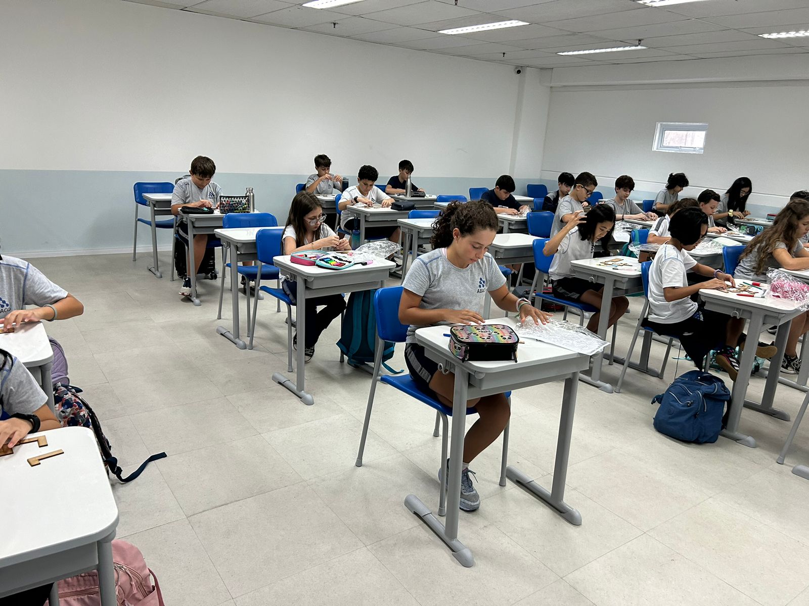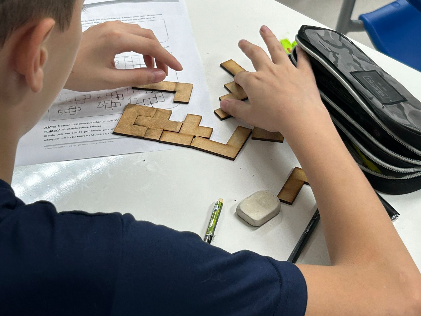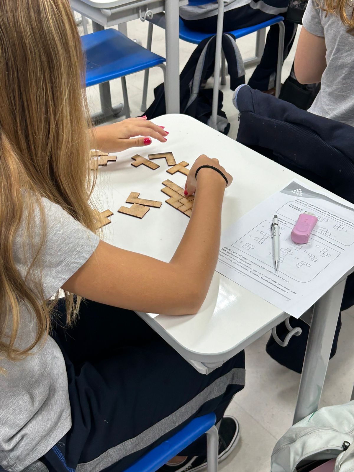 Você conhece um pentaminó? Os estudantes do aprofundamento de matemática conhecem bem! Durante as aulas de aprofundamento, os alunos da Unidade Ipiranga embarcaram em uma jornada fascinante no mundo da geometria. Sob a orientação do professor Luan, os estudantes foram desafiados a explorar os pentaminós, peças compostas por cinco quadrados, em uma atividade que envolveu não apenas o estudo teórico, mas também a aplicação prática dos conceitos.