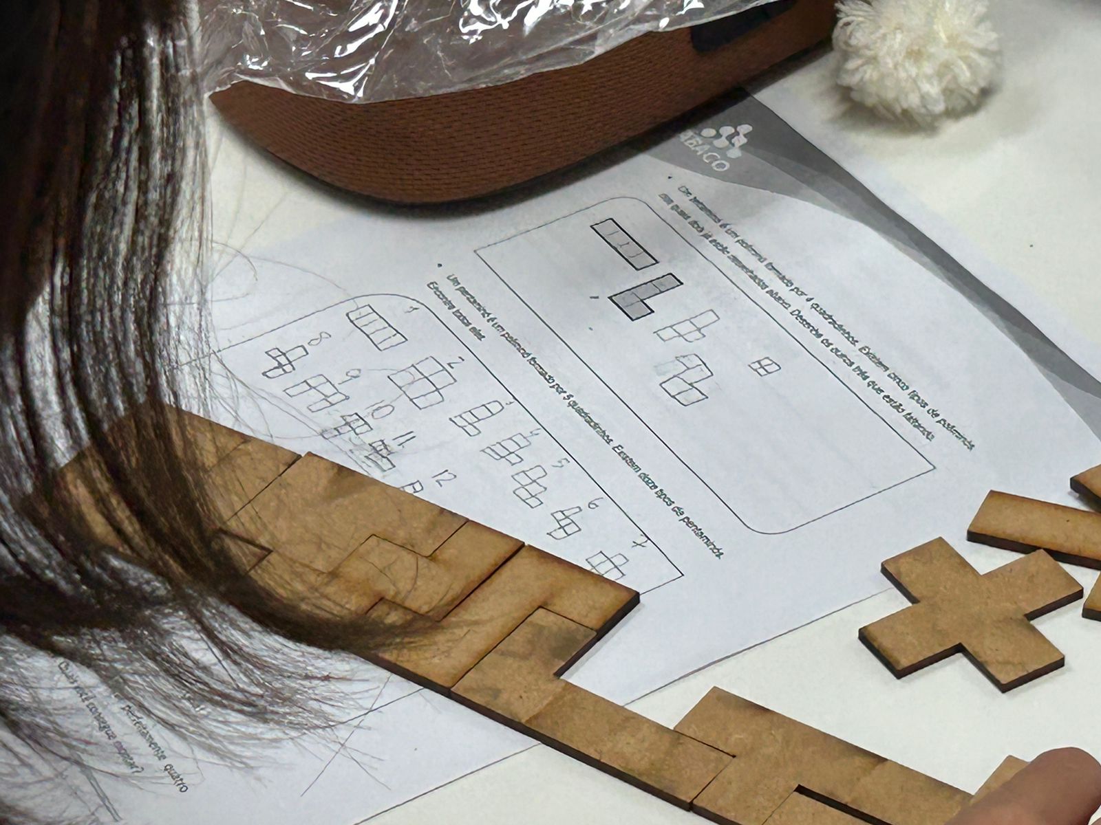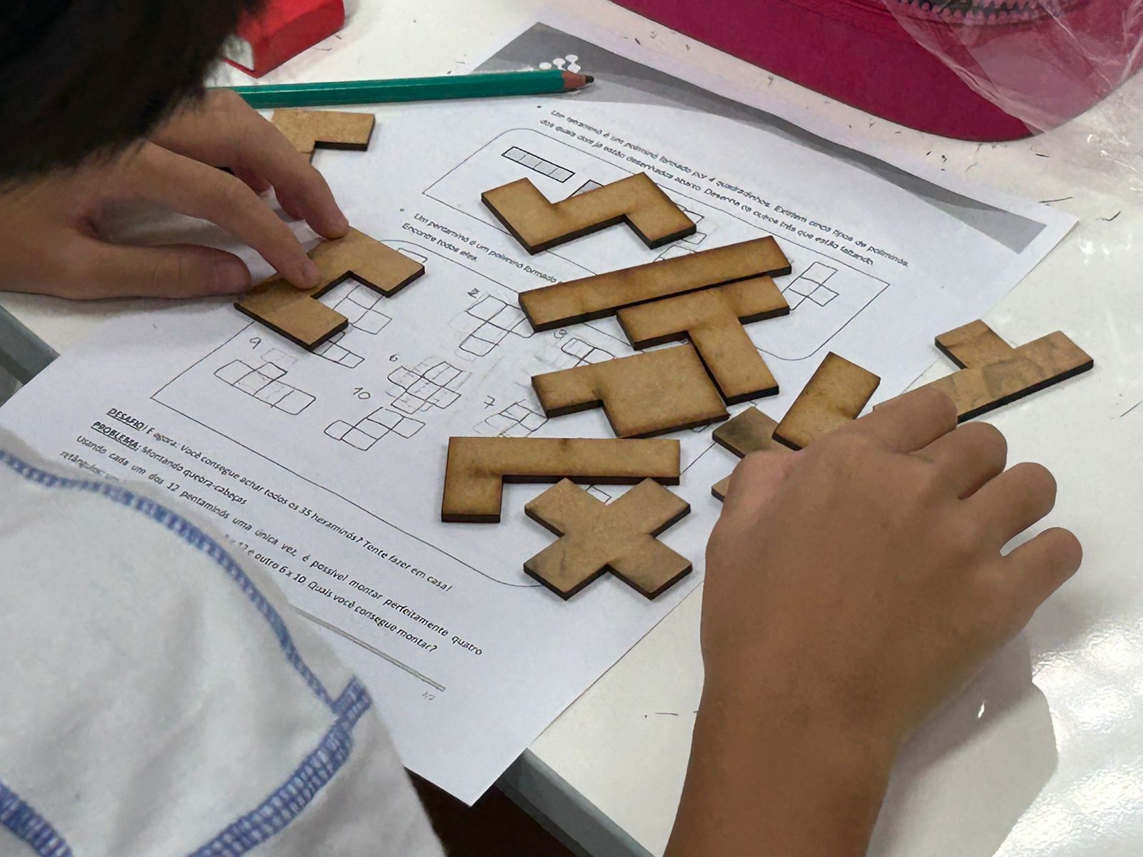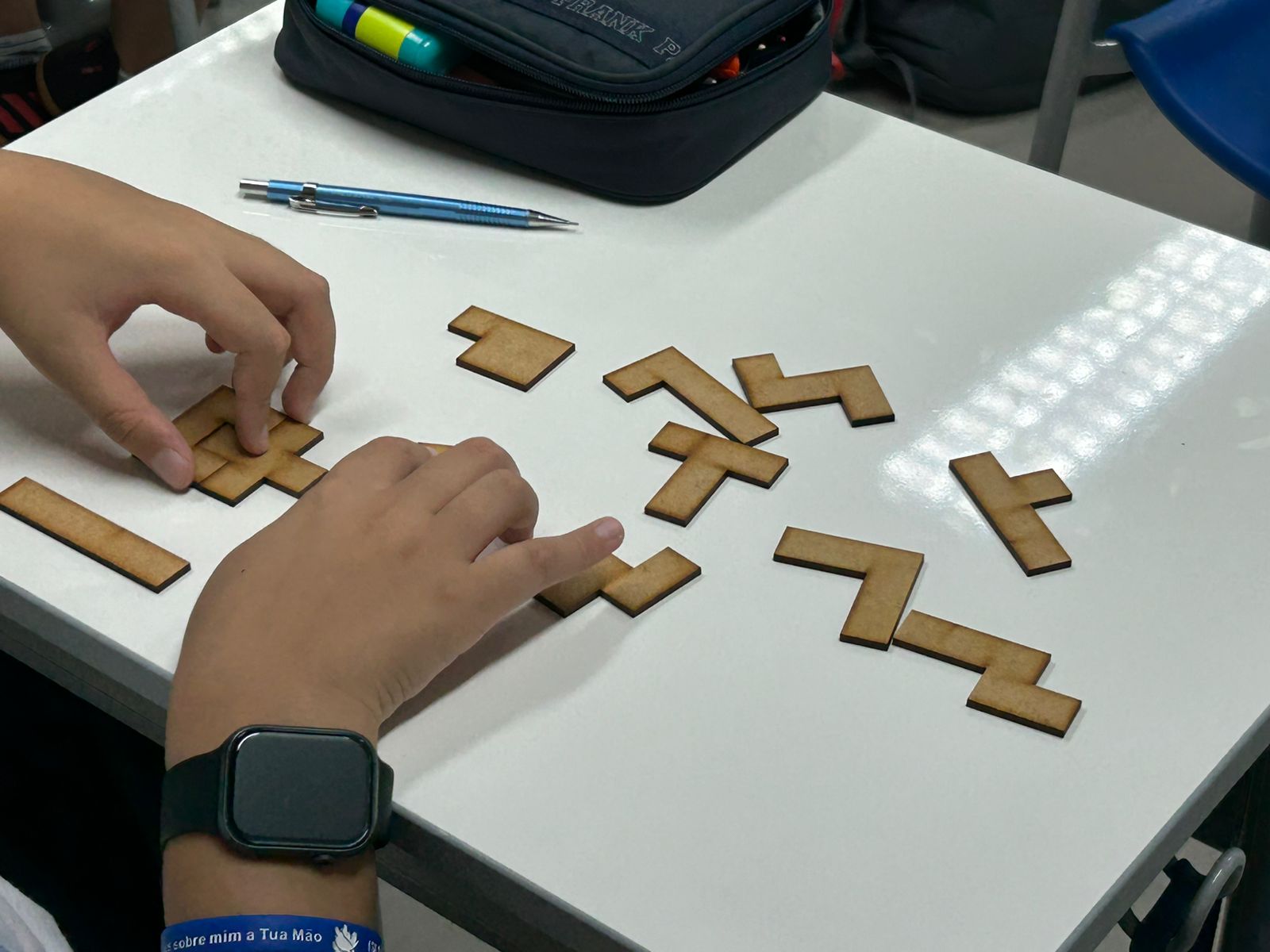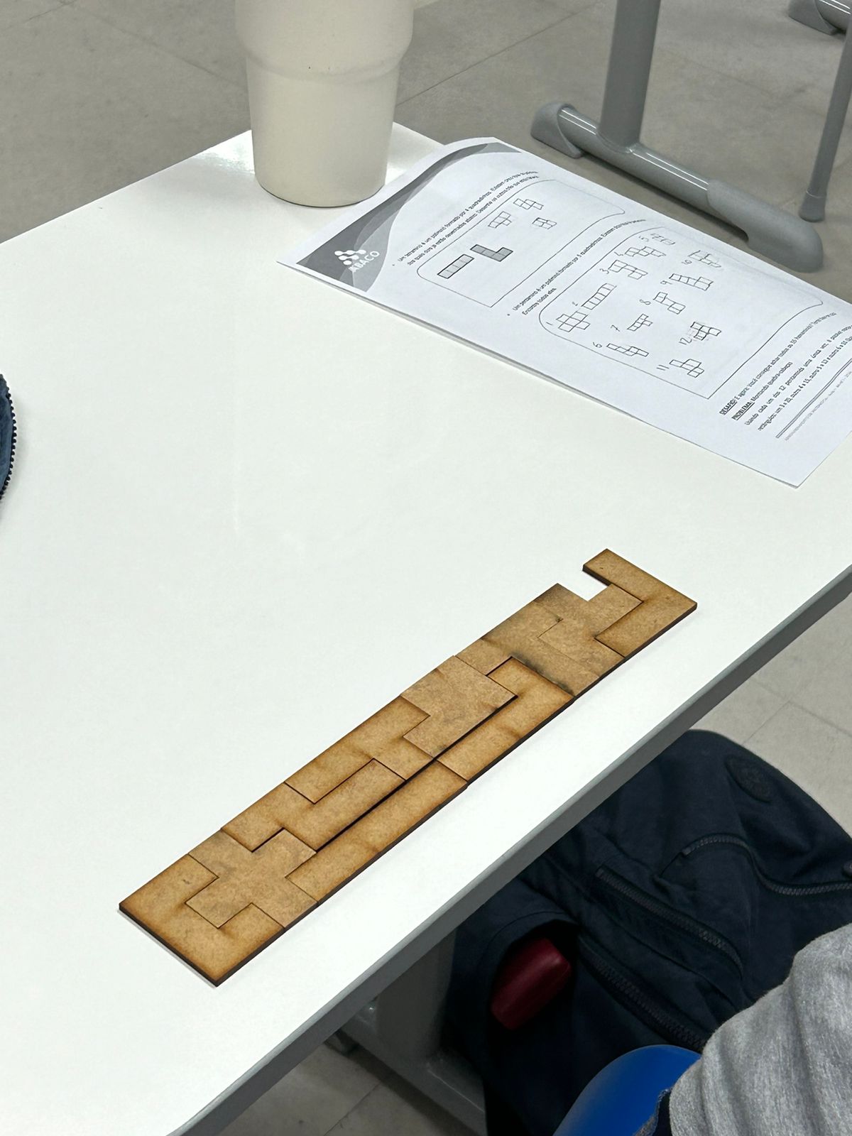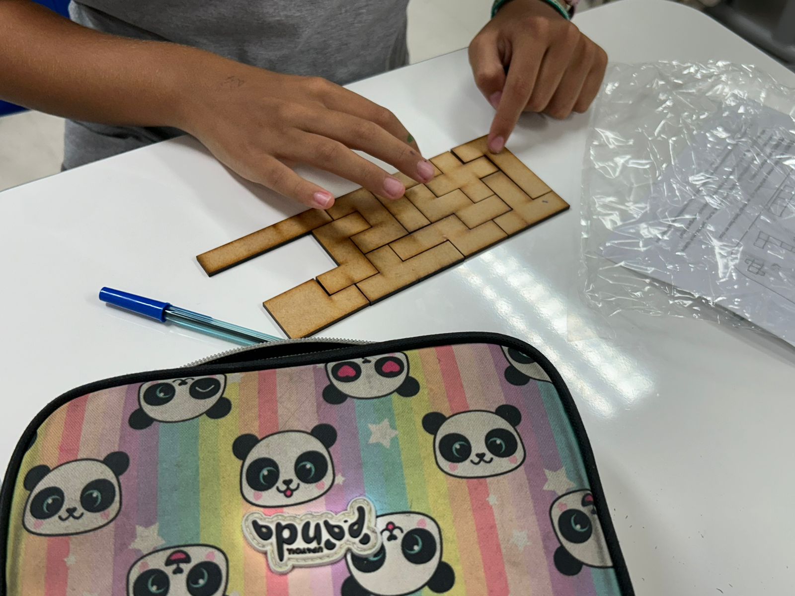 O diferencial desta experiência foi o uso de tecnologia no processo de fabricação das peças. Utilizando técnicas de fabricação digital, os pentaminós foram desenhados no computador para em seguida serem cortados com precisão na máquina de corte a laser no próprio espaço maker do Colégio. Essa abordagem não apenas enriqueceu a aprendizagem dos alunos, mas também proporcionou uma conexão direta entre a teoria matemática e sua aplicação no mundo real.