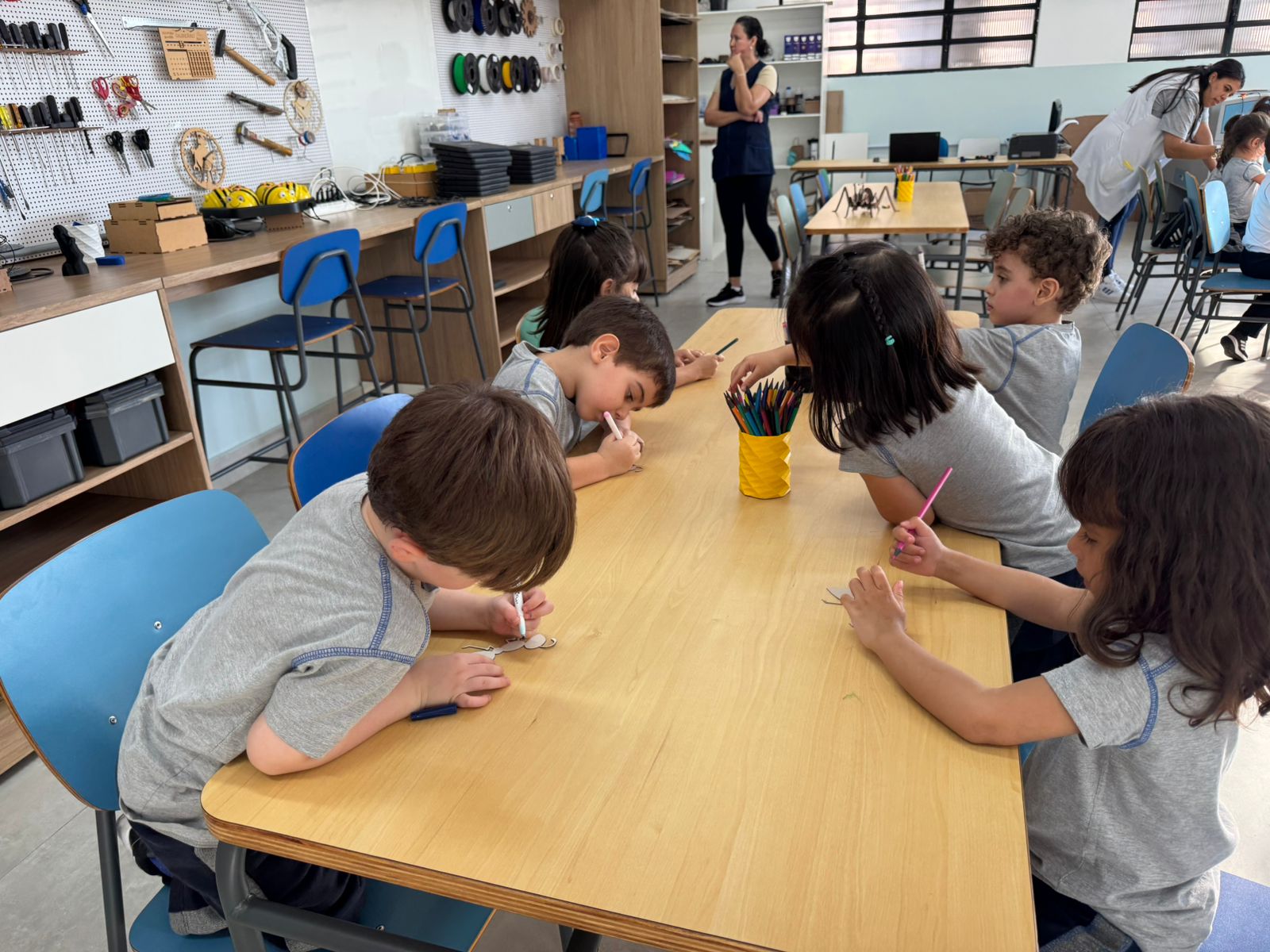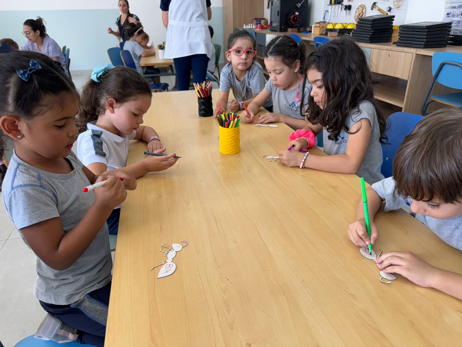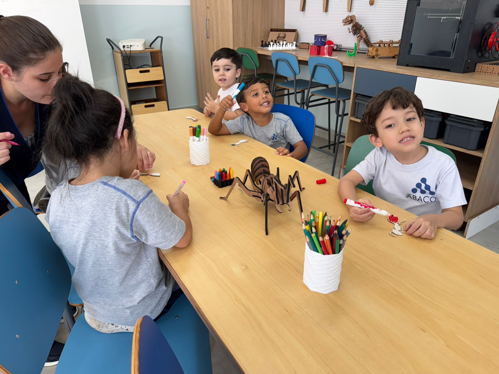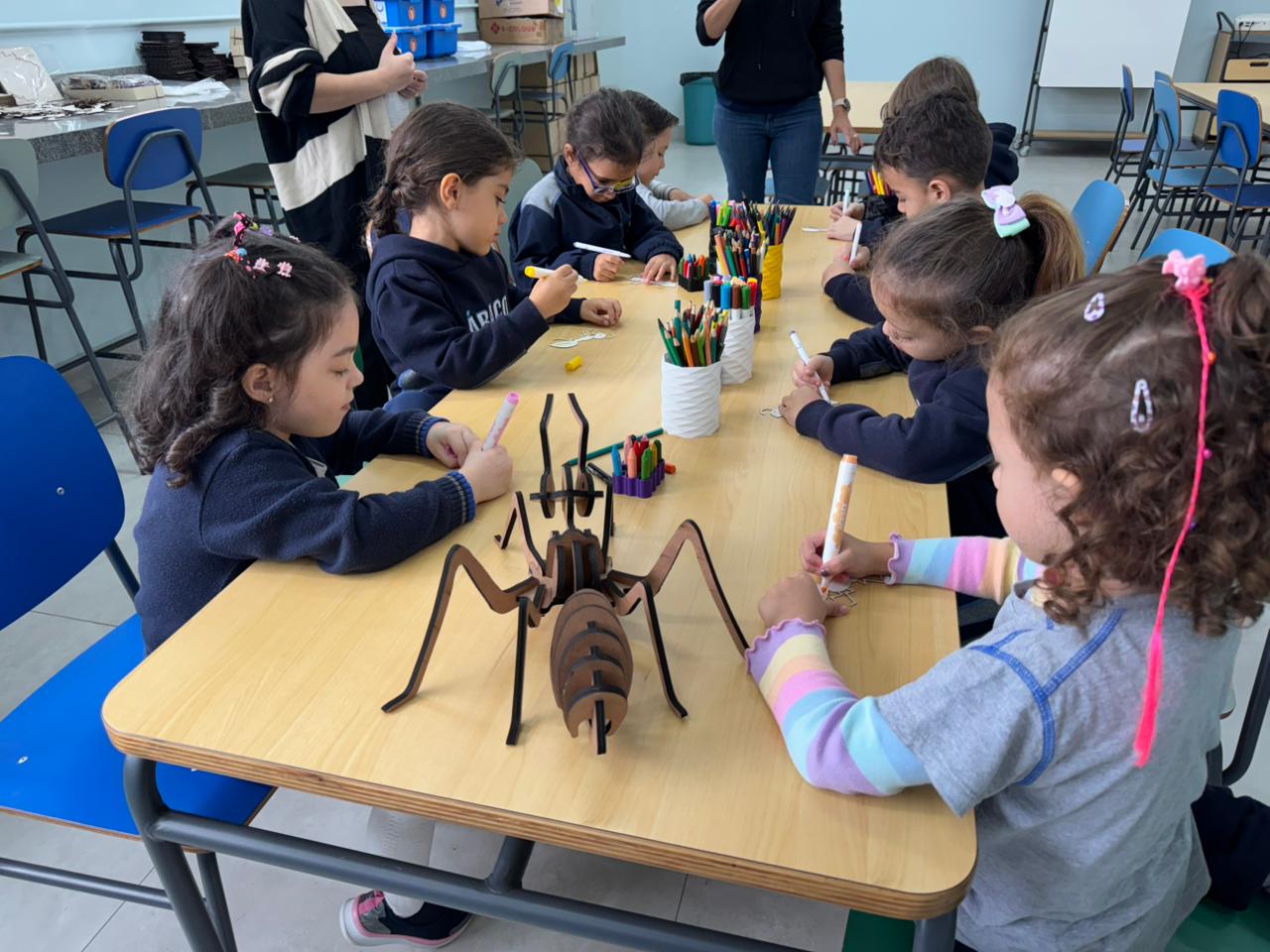 Durante a atividade, as crianças aprenderam sobre fabricação digital e como a tecnologia pode ser usada para criar e inovar. Depois de uma conversa inspiradora, colocaram a mão na massa e personalizaram suas próprias formigas, que foram cortadas a laser em papel paraná. Também levaram para a sala de aula uma formiga gigante em madeira, que será usada para continuar os estudos sobre a vida e os hábitos desses fascinantes insetos.