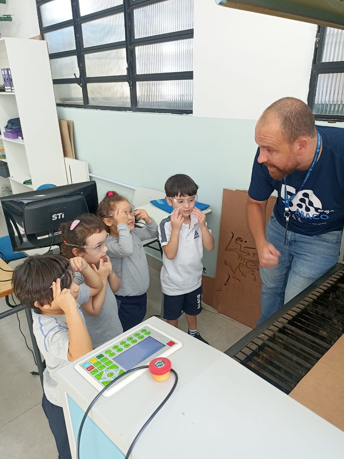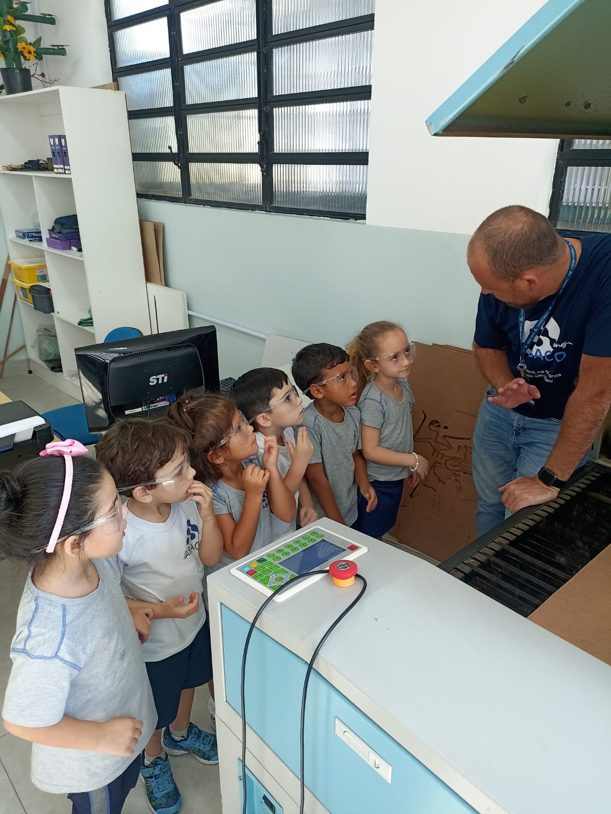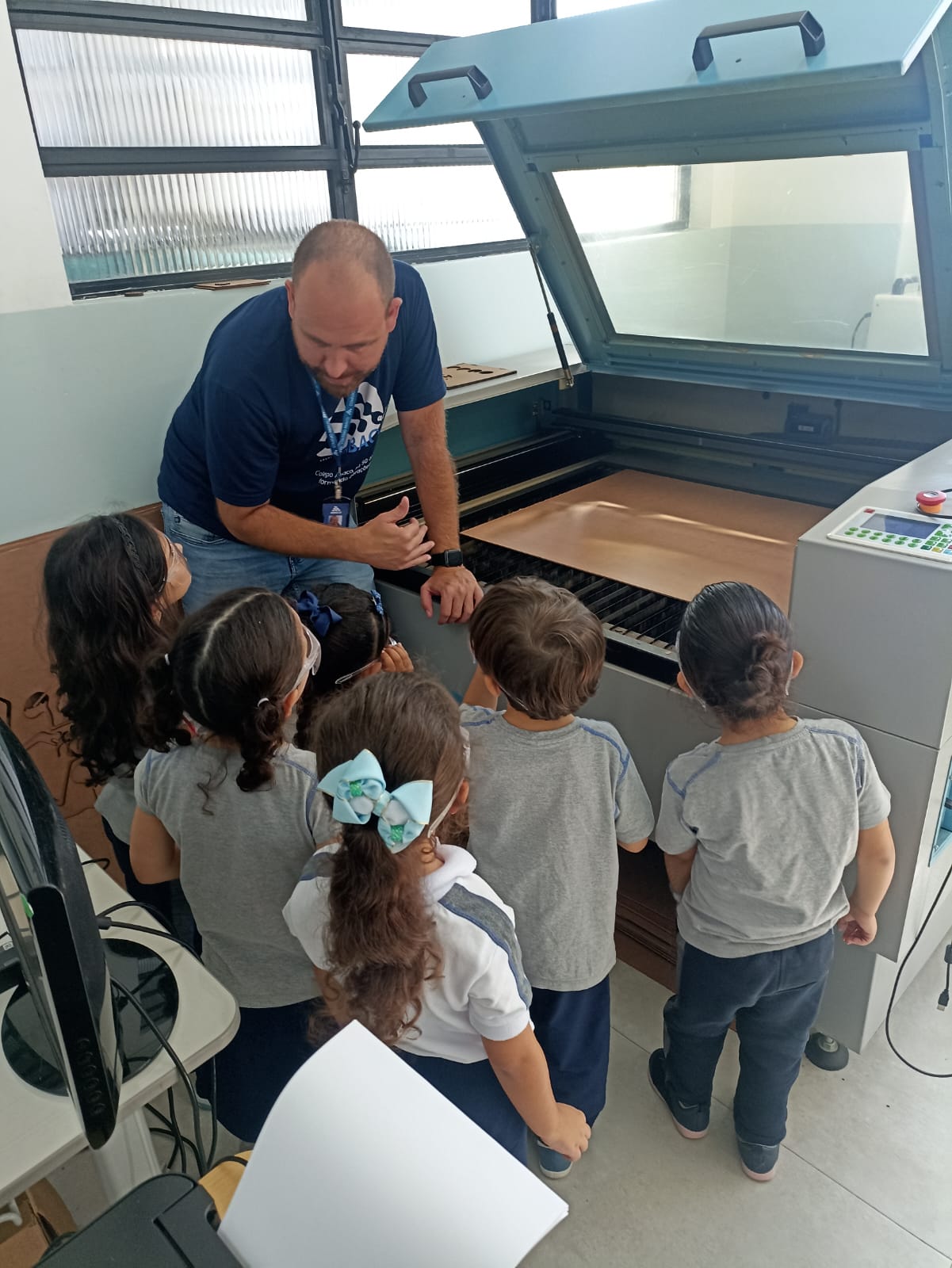 As turmas do G4 continuam aproveitando e se aprofundando nas atividades e desafios propostos no projeto “Descobertas do Jardim“; desta vez, a aventura foi ainda mais especial! Eles visitaram a Unidade 2 para vivenciar a etapa tecnológica do projeto, explorando o Espaço Maker e conhecendo de perto como a máquina de corte a laser funciona.