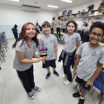 A Cultura Maker coloca o aluno no centro do processo de aprendizagem, transformando-o em um protagonista ativo. Durante a oficina, os estudantes foram incentivados a experimentar, errar, desmontar, ajustar e refazer. Cada nova tentativa de construção foi uma oportunidade para refletir sobre o que funcionava estruturalmente e o que precisava ser aprimorado. Esse ciclo contínuo de prototipagem é fundamental para o desenvolvimento do pensamento crítico e da resiliência. Com os kits em mãos, exploramos diferentes formas de conexão, testamos a resistência das montagens e descobrimos como pequenos ajustes de design fazem uma grande diferença. Essa vivência permitiu que eles internalizassem conceitos espaciais e lógicos de forma intuitiva e significativa, algo que nem sempre é possível alcançar apenas com aulas teóricas.