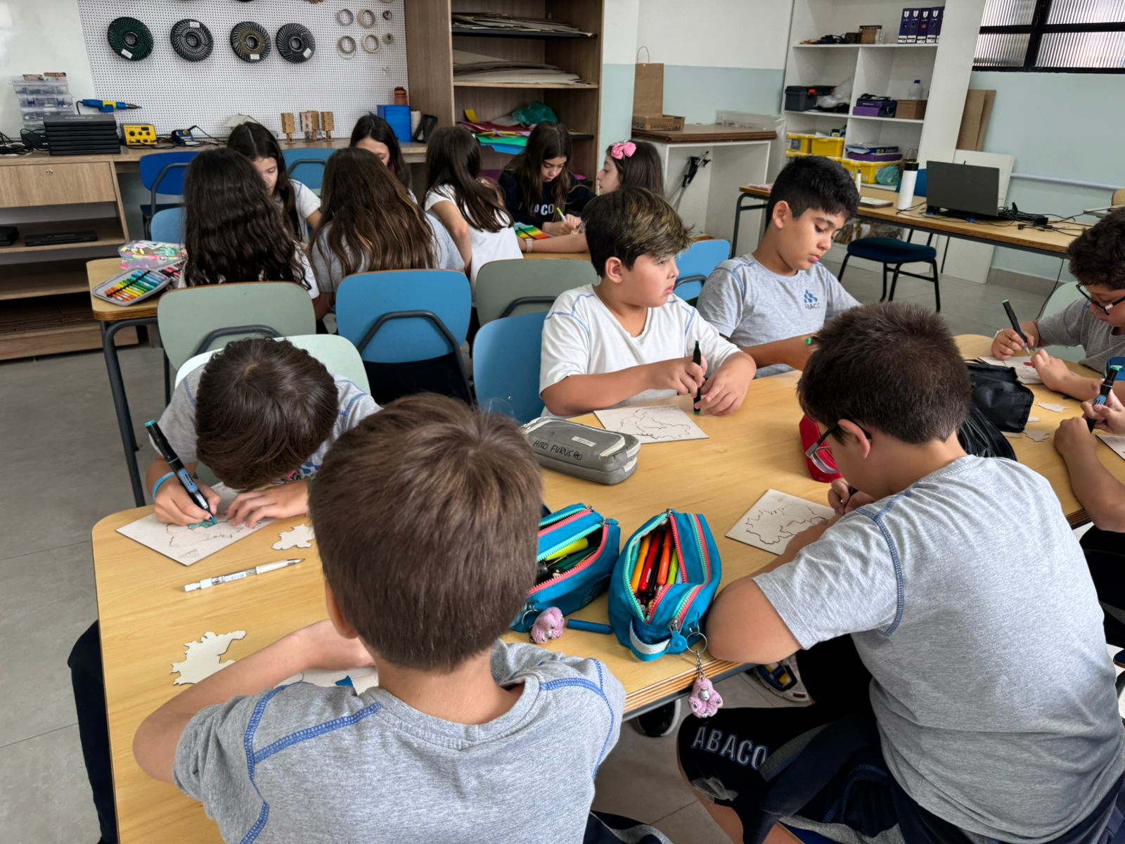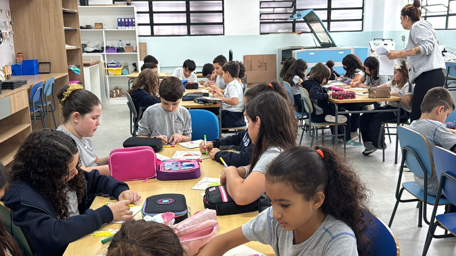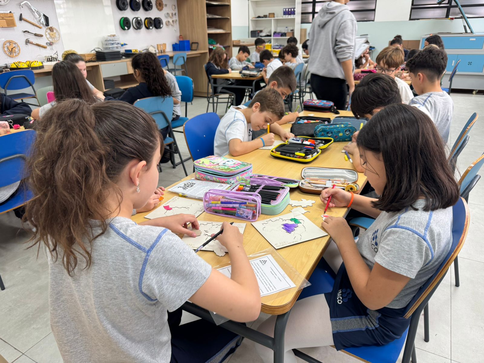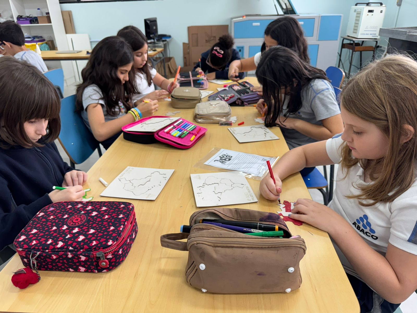 Para enriquecer ainda mais o projeto, os estudantes tiveram a oportunidade de visitar o Espaço Maker na Unidade II. Lá, eles conheceram a máquina de corte a laser, uma poderosa ferramenta de fabricação digital. Com orientação e supervisão dos professores, eles criaram seu próprio quebra-cabeça das regiões brasileiras utilizando a máquina. Cada peça foi cuidadosamente desenhada e cortada, permitindo que os alunos recriassem e explorassem as formas e contornos do mapa do Brasil em um desafio divertido e educativo.