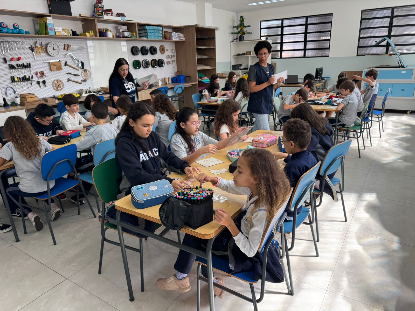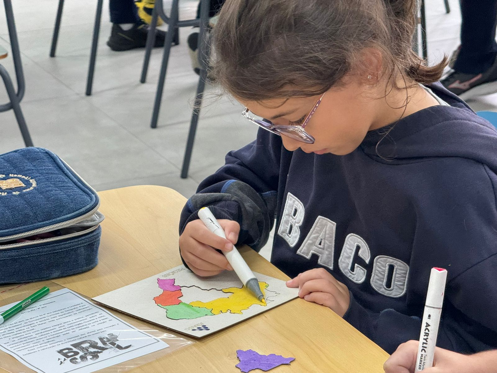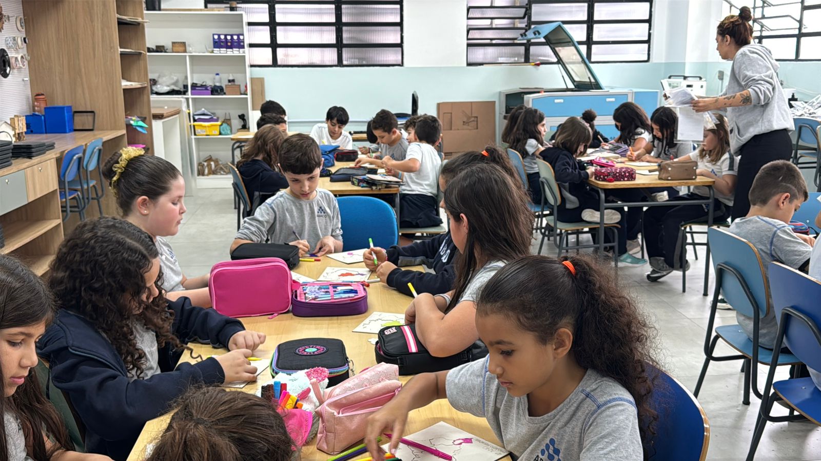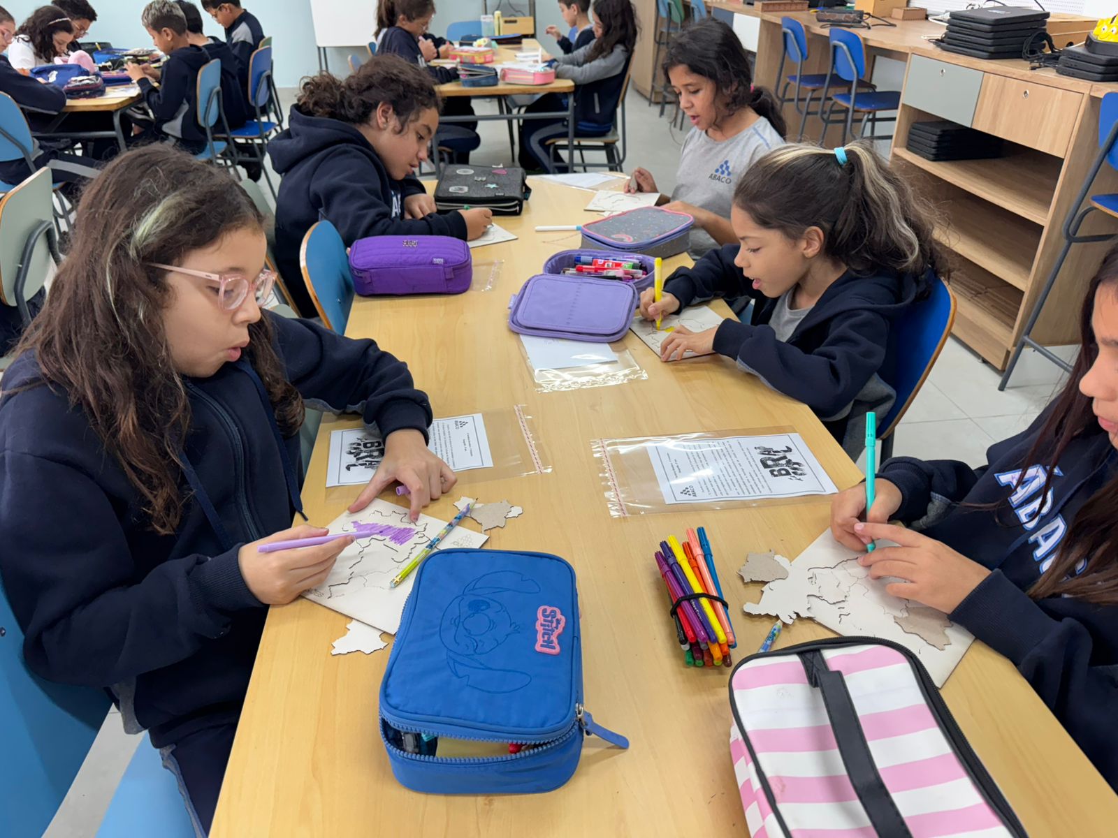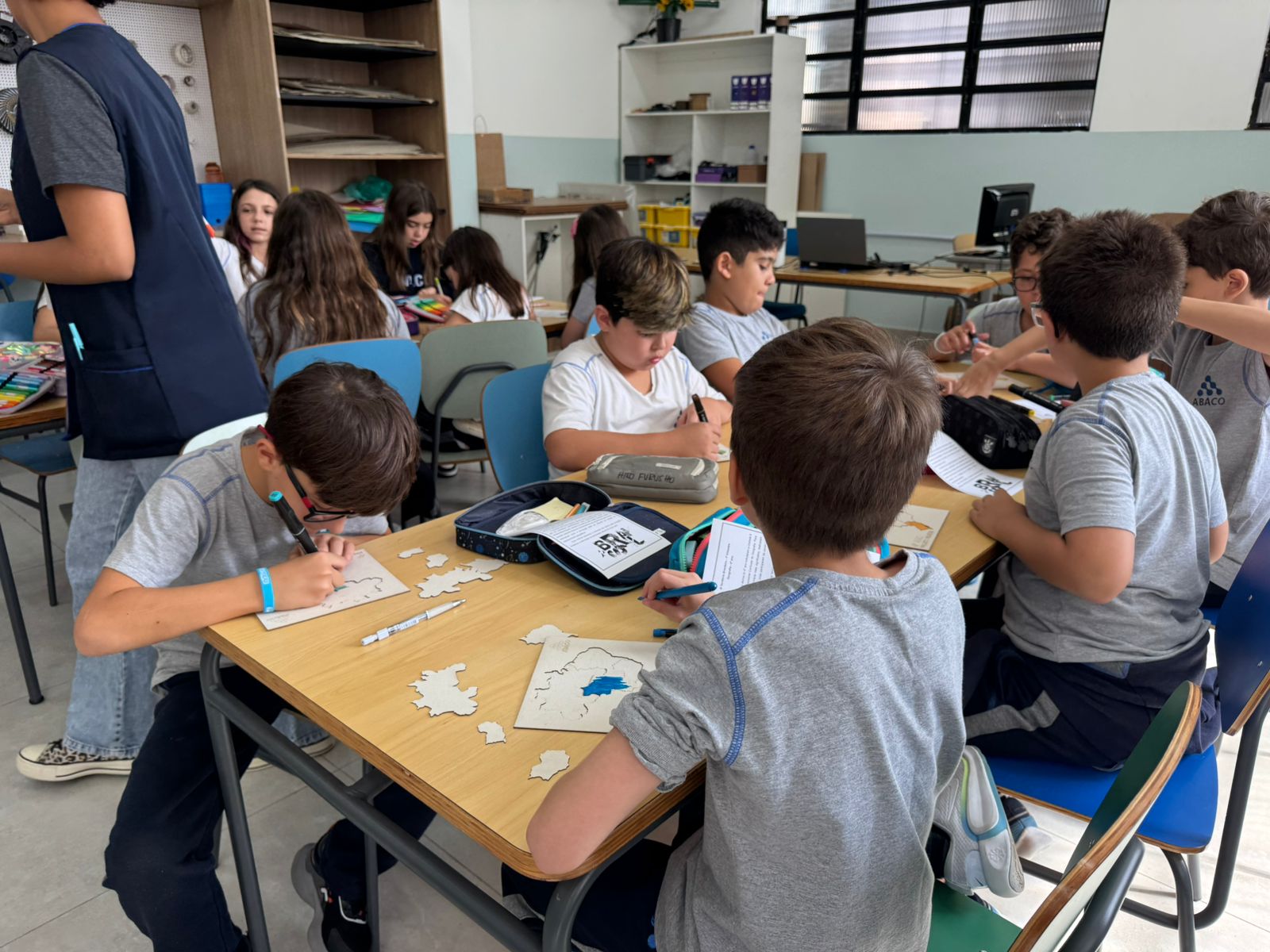 Para enriquecer ainda mais o projeto, os estudantes tiveram a oportunidade de visitar o Espaço Maker na Unidade II. Lá, eles conheceram a máquina de corte a laser, uma poderosa ferramenta de fabricação digital. Com orientação e supervisão dos professores, eles criaram seu próprio quebra-cabeça das regiões brasileiras utilizando a máquina. Cada peça foi cuidadosamente desenhada e cortada, permitindo que os alunos recriassem e explorassem as formas e contornos do mapa do Brasil em um desafio divertido e educativo.