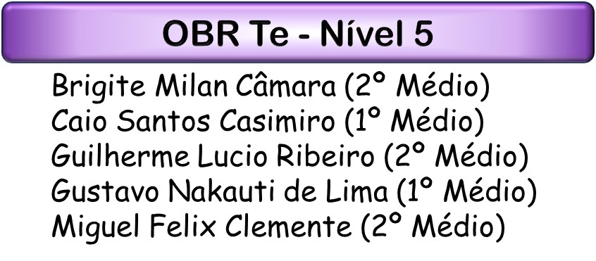 Saíram os resultados da 1ª fase da OBR Te 2023, do Nível 5 (Ensino Médio). Parabenizamos aos 5 alunos e aluna que conseguiram passar de fase nesta competição: