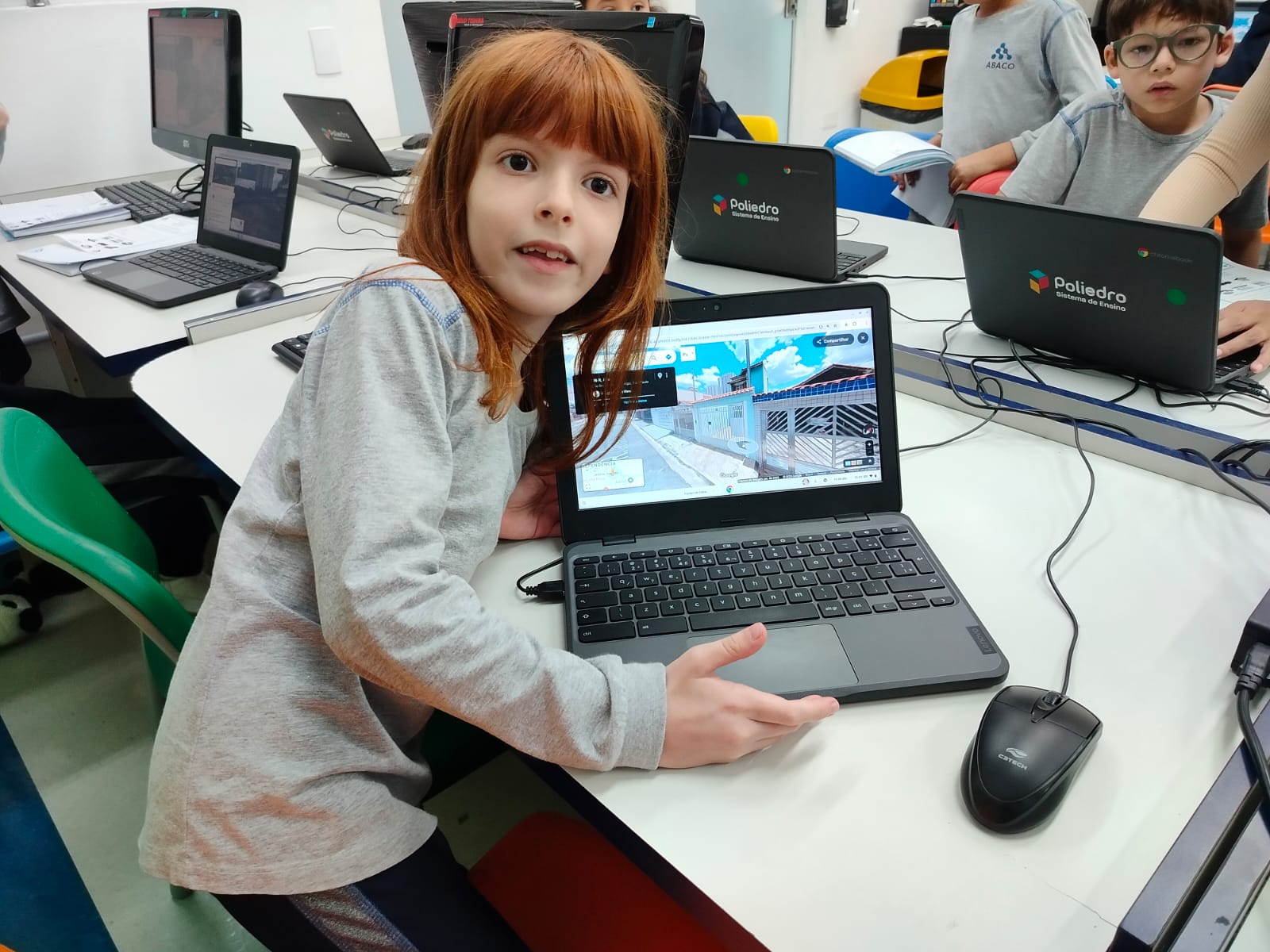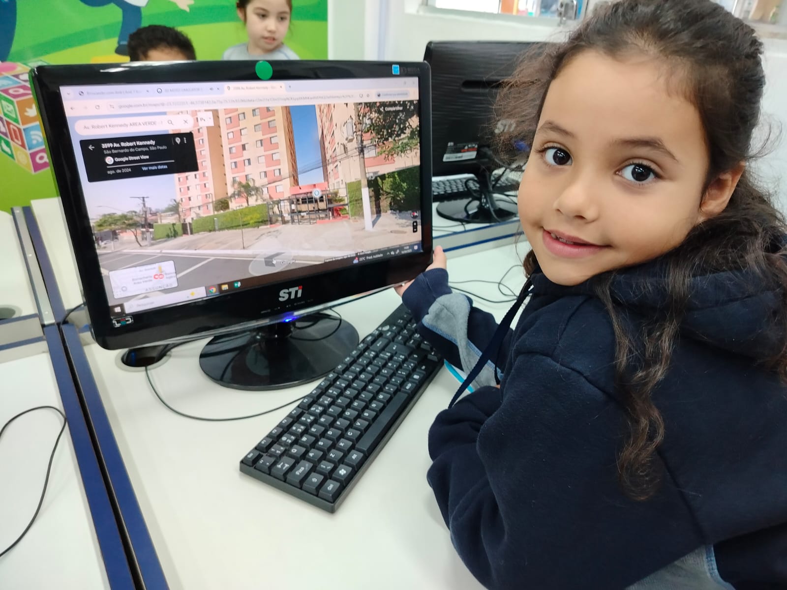 Usando o Google Maps, eles localizaram seus endereços, observaram os arredores e identificaram pontos importantes do bairro, como escolas, praças, comércios e unidades de saúde. Mais do que apenas navegar no aplicativo, a proposta foi entender a organização do espaço urbano e refletir sobre como a tecnologia pode nos ajudar no dia a dia – desde encontrar um caminho até conhecer os serviços disponíveis perto de casa.